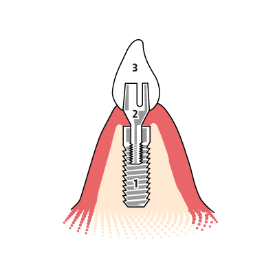 Implantate werden in den Kieferknochen eingesetzt und verbinden sich innerhalb weniger Monate mit ihm, sodass sie danach hohen Belastungen standhalten können. Wenn der Knochen für eine Implantation nicht geeignet ist, muss vor der Implantatsetzung ein Knochenaufbau erfolgen.